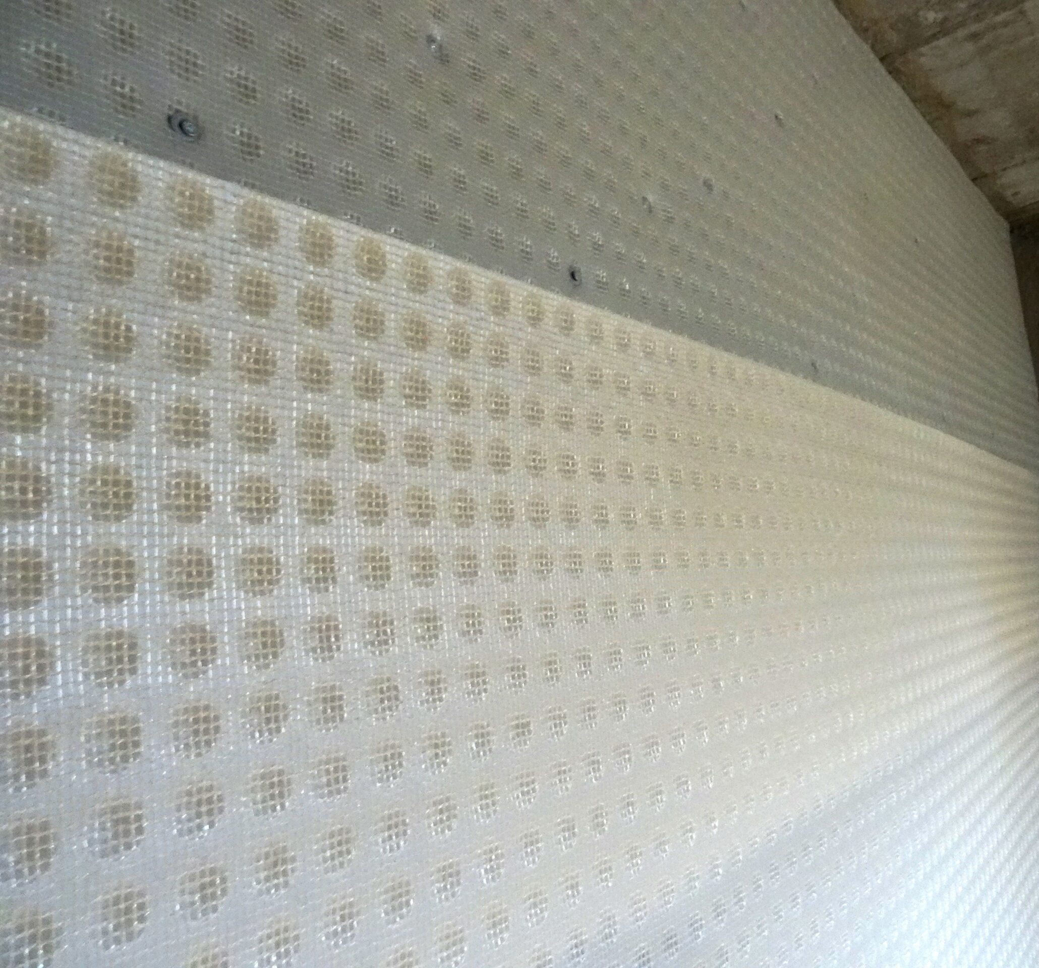 La membrane d’étanchéité alvéolée HY-N8 empêche le contact entre le mur et l’enduit de plâtre ou le cimentage. Elle permet à l’eau de ruisseler entre le mur et la membrane jusqu’à la rigole drainante. Elle est imperméable, imputrescible et prévient la prolifération des bactéries et des moisissures.