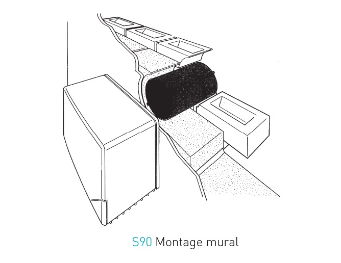 L’extracteur centrifuge S90 HTN peut être raccordé sur des gaines longues (supérieures à 3 mètres) et étroites, pour la ventilation de locaux sanitaires et humides.